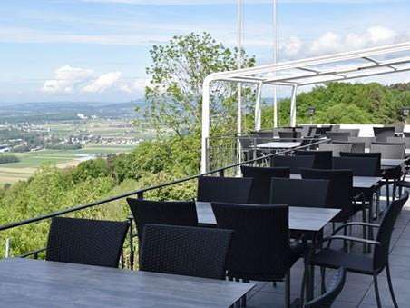 Das Panoramarestaurant im Thurgau mit Weit- und Aussicht am Südhang oberhalb von Weinfelden bietet alles was das Herz begehrt.